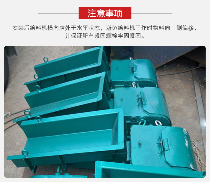 安裝后給料機(jī)橫向應(yīng)處于水平狀態(tài),避免給料機(jī)工作時(shí)物料向一側(cè)偏移,并保證所有緊固螺栓牢固緊固。
