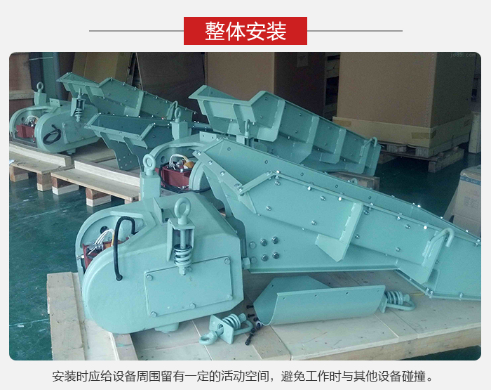 電磁振動(dòng)給料機(jī)應(yīng)整體安裝,一般不允許拆卸,也不允許在機(jī)器上固結(jié)任何剛性附件。安裝時(shí)應(yīng)給設(shè)備周圍留有一定的活動(dòng)空間,避免工作時(shí)與其他設(shè)備碰撞,一般長度方向的空間小為 50 mm,寬度方向?yàn)?25 mm。