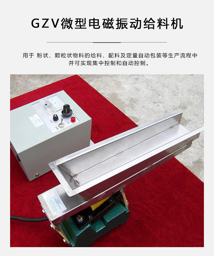 GZV微型電磁振動給料機廣泛應(yīng)用于輕工、化工、糧食加工、商業(yè)等行業(yè),用于粉狀、顆料狀物料的給料、配料及定量自動包裝等生產(chǎn)流程中,并可實現(xiàn)集中控制和自動控制。