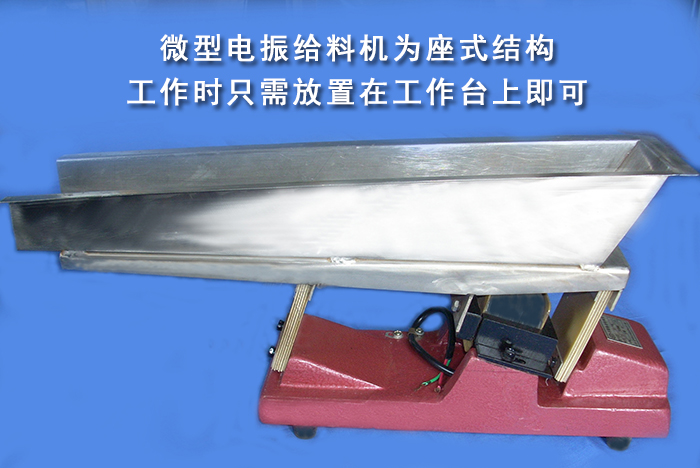 微型電振給料機為座式結(jié)構(gòu),工作時只需放置在工作臺上即可。另可在給料槽內(nèi)增加一層或二層篩網(wǎng),成為小型振動篩分設(shè)備。