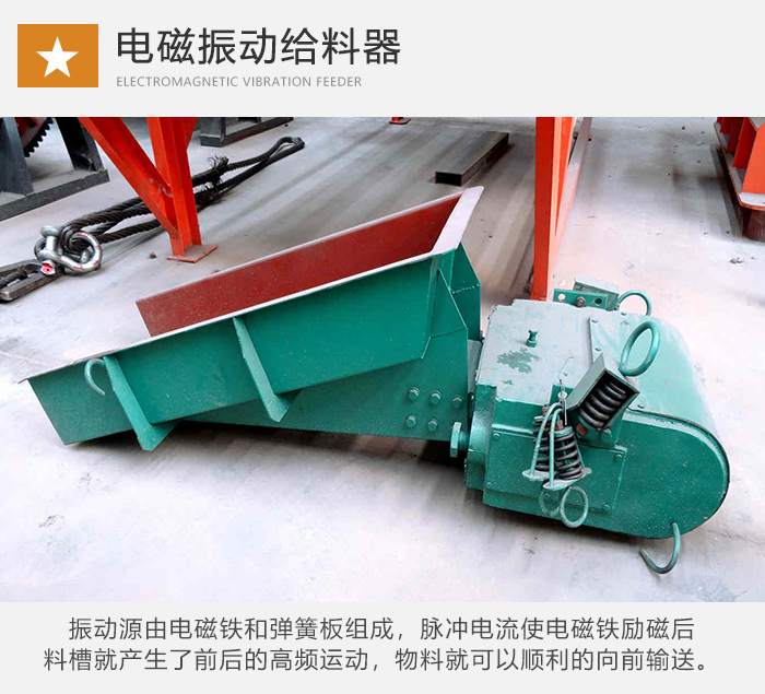 電磁式給料器:振動(dòng)源由電磁鐵和彈簧板組成,脈沖電流使電磁鐵勵(lì)磁后,料槽向后運(yùn)動(dòng),同時(shí)在彈簧板的作用力下,料槽就產(chǎn)生了前后的高頻運(yùn)動(dòng),是物料可以順利的向前輸送。
