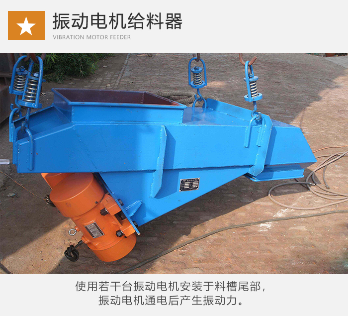 振動(dòng)電機(jī)式:使用若干臺(tái)振動(dòng)電機(jī)安裝于料槽尾部,振動(dòng)電機(jī)通電后產(chǎn)生振動(dòng)力。