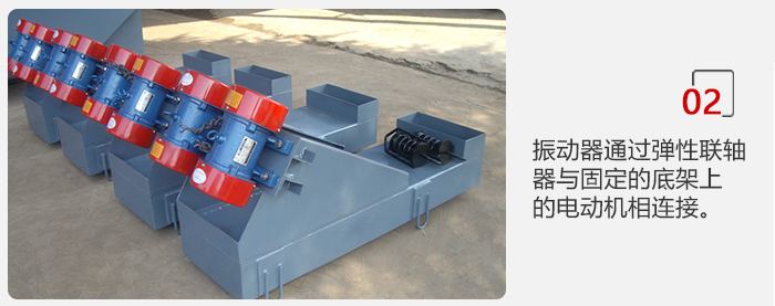 2.振動(dòng)器通過彈性聯(lián)軸器與固定的底架上的電動(dòng)機(jī)相連接。